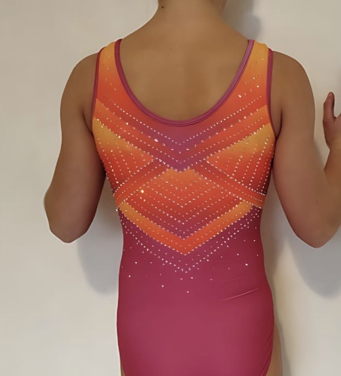 Turn heads in this stunning leotard, designed with gorgeous, vibrant colours that shine from every angle. The front and back are beautifully embellished with sparkling diamonds, adding an extra touch of glamour and elegance. Crafted from ultra-soft, high-quality Lycra, it offers exceptional comfort and flexibility—perfect for training, performing, or standing out at competitions. Feel confident, comfortable, and unforgettable in this show-stopping leotard.